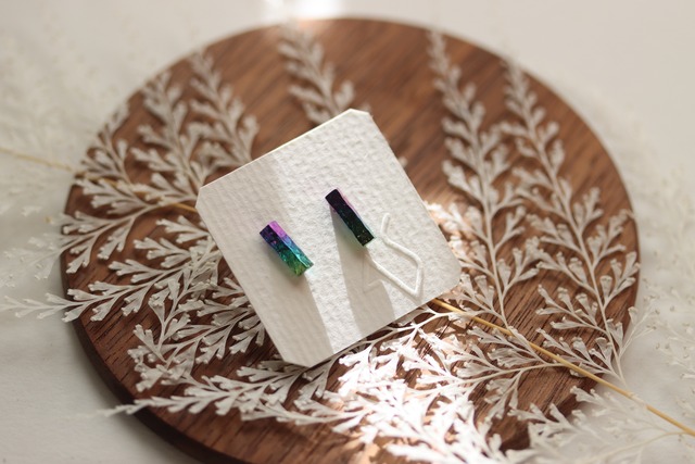 [ balance バランス ] あなたに力を与えるバランサーになる 人気シリーズbalanceから耳元できらっと輝くスタッドタイプが登場。 ピアスのイメージは分銅。 日々生きていく中で均衡をいかに保てるか、天秤にかけながらバランスを求められる世の中。 そんなあなたに分銅=weight、すなわち力を与えます。 作品はひとつひとつ手作業で制作しています。 きらきらとした輝きが光の当たり方によって変わり、発色をより際立たせます。 ※こちらの商品は両耳セットでの販売です。 ◇大きさは全体が1cmほど。 ◇通常包装は写真の通りの箱に入れての包装となっております。 プレゼント用にご利用の方は通常包装の箱がぴったり入る袋をご用意していますので、購入オプションからお選び頂けましたら同封いたします。 詳しくはこちらのページをご覧ください。 https://asgeometry.thebase.in/items/31413162 ◇素材はアレルギーを起こしにくいとされているチタン製です。 キャッチはシリコン製のものをお付けしています。 金属アレルギーをお持ちの方も安心してお使い頂けます。 ※まれにチタンでも金属アレルギーを起こす方もおられます。 色は着色ではなく、発色。 虹やシャボン玉の色が様々に見えることと同じ原理です。 色をつけているわけではないため、色落ちしたり変色の心配が一切ございません。 半永久的に綺麗な色のままお使いいただけます。