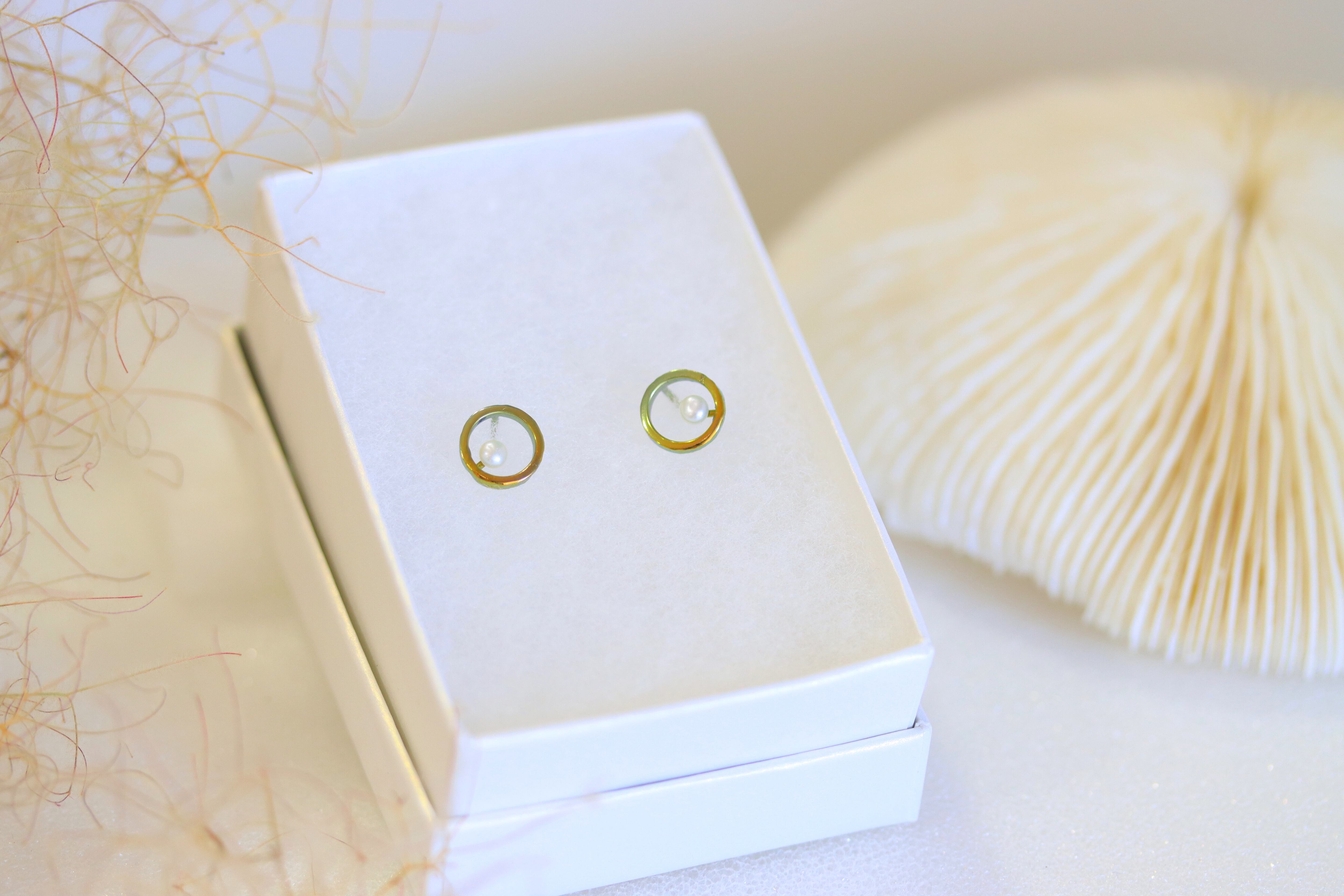 淡水パールとシンプルなデザインが上品に耳元を飾ります。