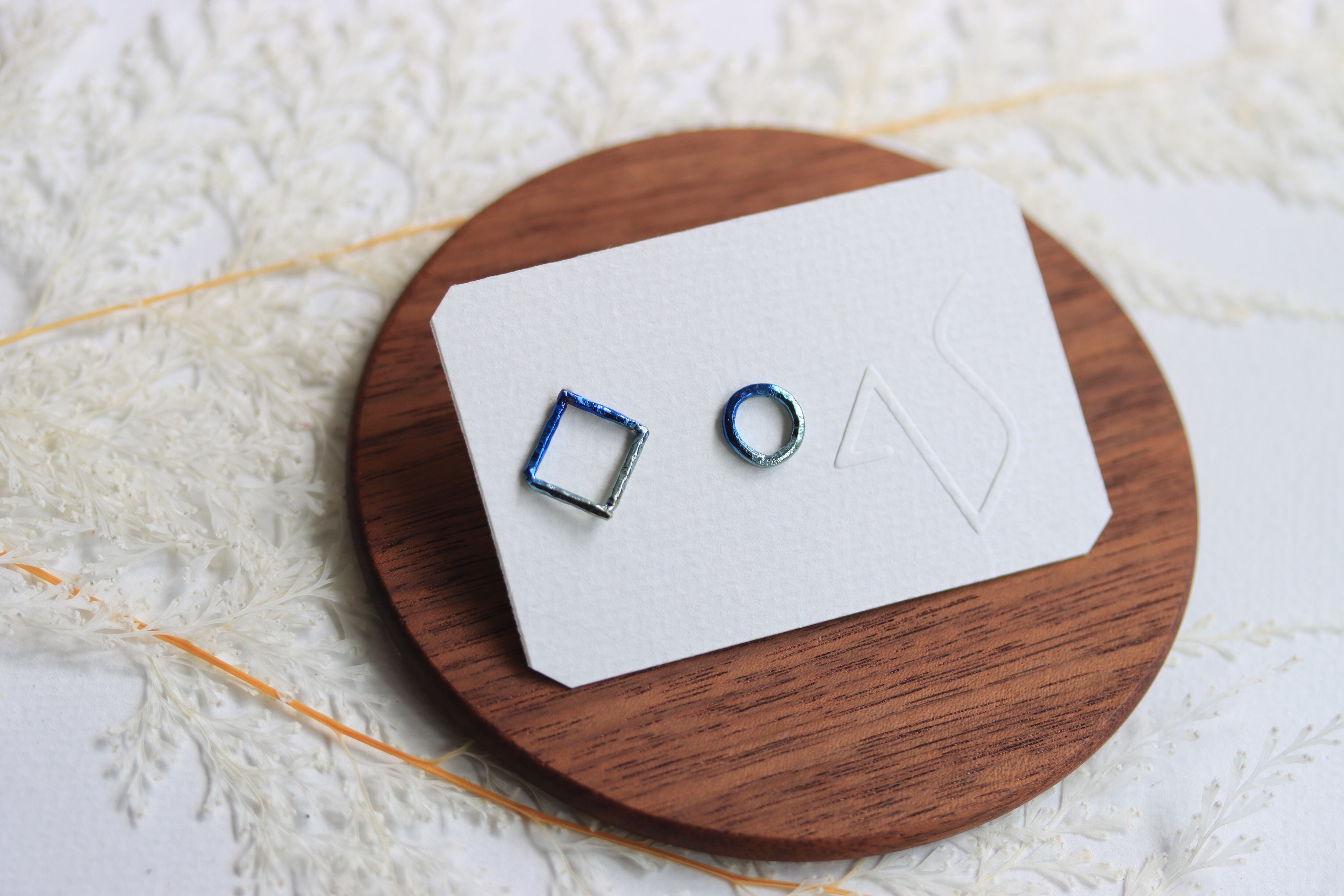 幾何学形態をモチーフに、シンプルでどんな場面にもお使い頂けるピアスをデザインしました。