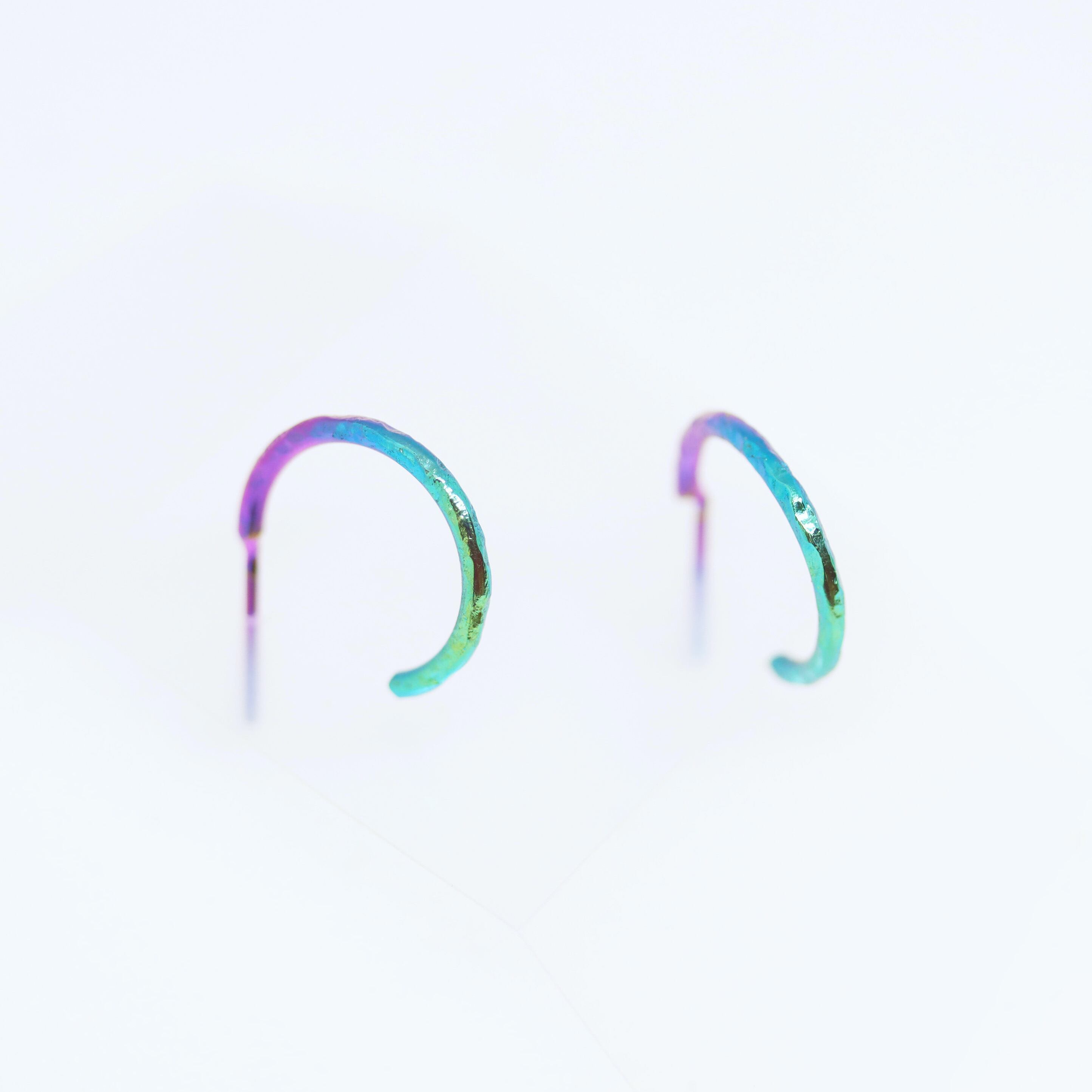 小さなフープピアスがシンプルに耳元を飾ります。